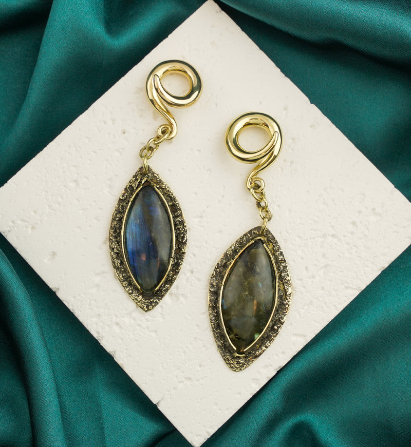 Textured Labradorite Stone Brass Hangers/Ear Weights Version 1