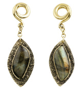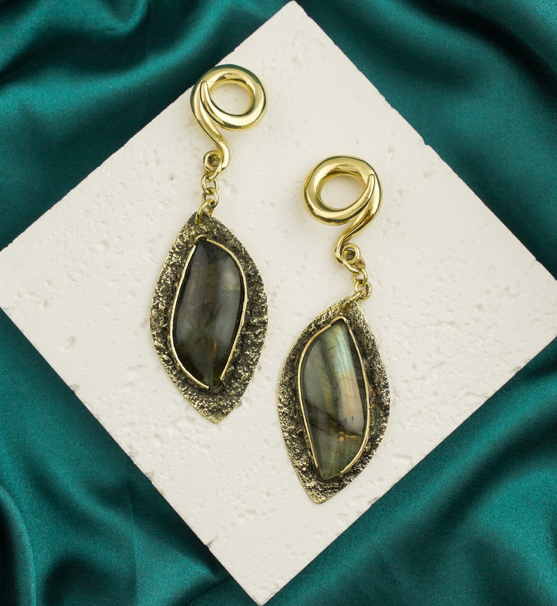 Textured Labradorite Stone Brass Hangers/Ear Weights Version 17