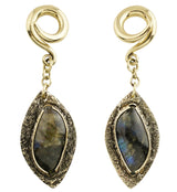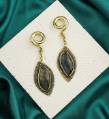 Textured Labradorite Stone Brass Hangers/Ear Weights Version 26