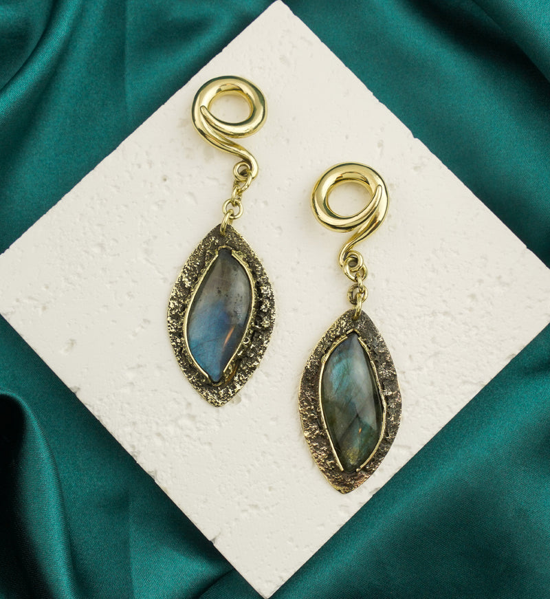 Textured Labradorite Stone Brass Hangers/Ear Weights Version 32