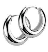 These thick, hoop shaped earrings have a hinged design and are made from 316L stainless steel. They are size 18G with an inner diameter of 1/2" (12mm). The hinged design is easy to open and close. Sold in pairs (2 pieces). For healed piercings.