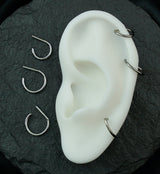 Hinged segment ring made from ASTM F-136 titanium with a D-shaped hoop shape. Size is 16G with an inner diameter size of 1/4" (6mm), 5/16"(8mm) or 3/8" (10mm). The hinged design makes this piece easy to put in and remove. Amazing for septum, cartilage piercings! Sold individually.