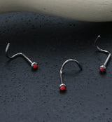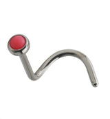 ASTM f136 titanium nose screw with dyed pink howlite stone bezel set inlay. Available in sizes 20G, 18G, 165G.