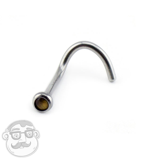 This tigers eye stone is the perfect addition to your nose piercing, fierce and secure! Gemstones are become more and more popular with the amount of variety they bring. The tigers eye cabochon sits on top of a 6mm post. The post is a screw style, and it the screw helps keep the ring in place and decreases movement. This piece is made with ASTM F-136 TI6AL4VU ELI Titanium and comes in an 20G or 16G to fit your piercing comfortably. This is sold individually, and it is a great option for anyone with metal sensitives.