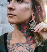 Sold in pairs (2pc) 10G or bigger to wear Handcrafted 14 grams each Height: 60mm x Width: 45mm Made from brass Brass is not meant for long term wear May oxidize under extreme moisture conditions