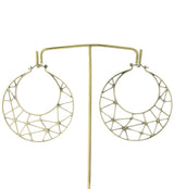 Hangers/earrings made from brass with a connected/net-like design. ASTM f-136 titanium clasp. Size is 18G with approximate dimensions of 80mm x 70mm. These are sold in pairs (2pcs).