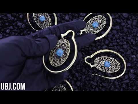 Sold in pairs (2pc) 6G (4mm) or bigger to wear Width: 42mm Height: 60mm 19 grams each Howlite stone Made from brass Brass is not meant for long term wear. May oxidize under extreme moisture conditions