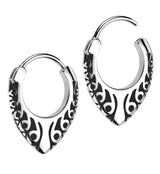 Tribal Teardrop Stainless Steel Hinged Hoop Earrings