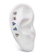 Pretty threadless top piece that has a triple opalite design and accented with beads. Made from ASTM F-136 titanium and purple opalite gems. Measures about 6mm x 5mm. 25G pin. Fits most threadless posts. Sold individually (top piece only).