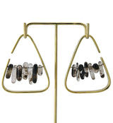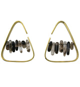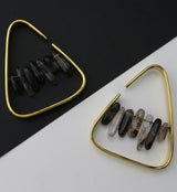 Stunning brass ear weights/hangers in a triangle shaped with spinning smokey quartz stones on the inside. Height: 64mm, width: 42mm. Height and width are approximate as these are handcrafted. Size is 4G with an approximate weight of 23 grams each. Sold in pairs (2pcs). For healed lobes/piercings.