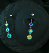 Triple Blue Aurora CZ Dangle Belly Button Ring