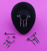 Triple Dagger Dangle Black CZ Stainless Steel Nipple Barbell Sale price$17.95