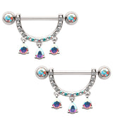 Triple Teardrop Dangle Rainbow Aurora CZ Stainless Steel Nipple Barbell