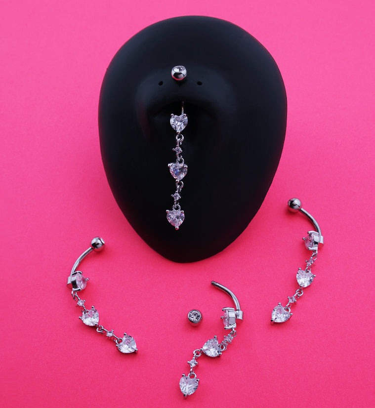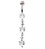 Triple Heart Clear CZ Dangle Stainless Steel Belly Button Ring