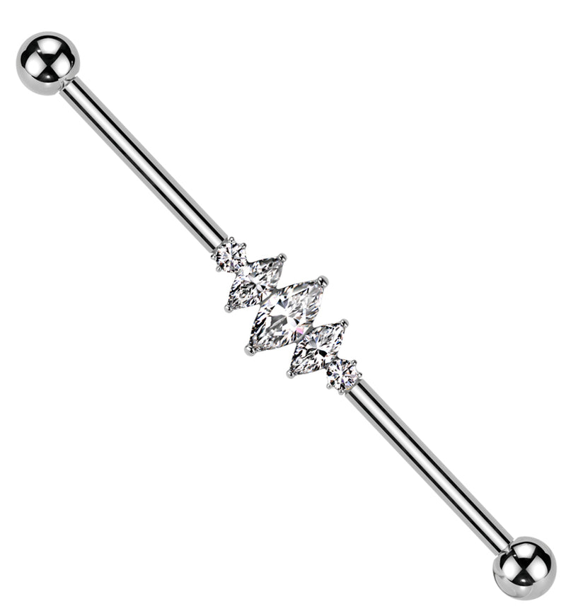 Triple Marquise Center Clear CZ Internally Threaded Titanium Industrial Barbell