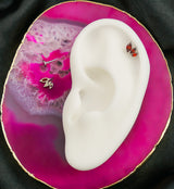 This durable titanium threadless labret is great for cartilage piercings. It features marquise-shaped, red CZ gems in descending size along with a 25G pin and flat back disk with a 3mm diameter. Sold individually, sizes available are 20G, 18G and 16G with a length of 5/16" (8mm) or 1/4" (6mm) for 20G. The design size is about 8mm x 6mm.