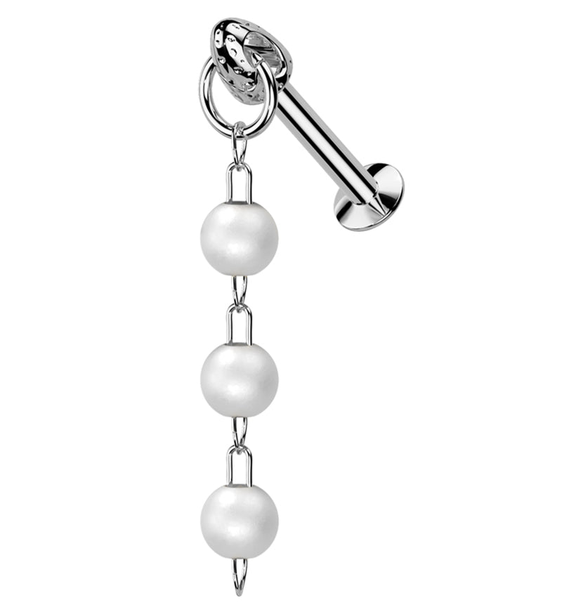 Triple Pearl Dangle Stainless Steel Convex Disc Threadless Labret