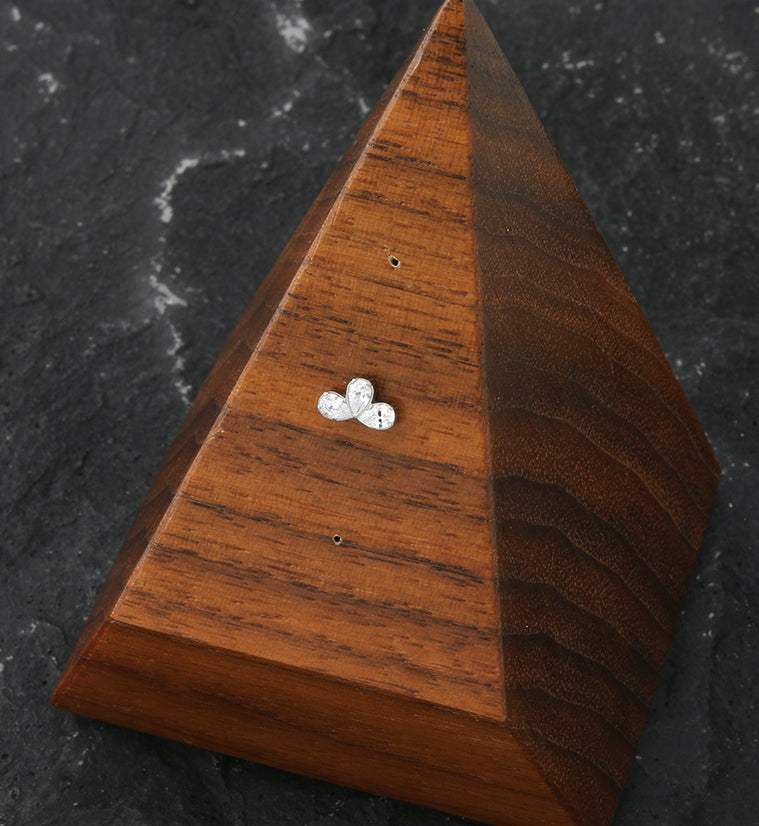 Sparkling threadless top piece that has a triple teardrop clear cubic zirconia gem design. Made from ASTM F-136 titanium. Measures about 7mm x 4mm. Fits most threadless posts. Sold individually (top piece only).