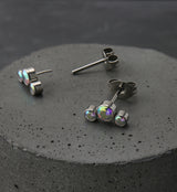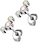 Triple Rainbow Aurora CZ Titanium Threadless Earrings