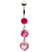 Triple Round Pink CZ Dangle Stainless Steel Belly Button Ring