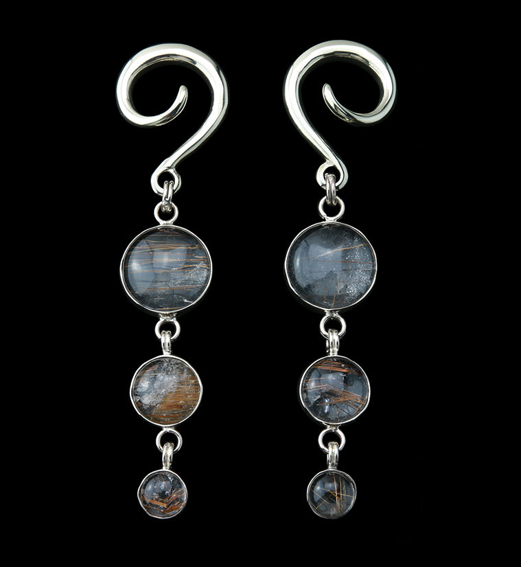 Triple Rutilated Quartz Stone Hanging Ear Weights