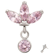 Triple Sepal Marquise Pink CZ Bezel Dangle Titanium Threadless Top
