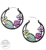 Tropical Flower Black Plug Hoops