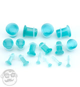Tropical turquoise cat’s eye glass single flare plugs in any of the following sizes: 8 gauge (3mm), 6 gauge (4mm), 4 gauge (5mm), 2 gauge (6mm), 0 gauge (8mm), 00 gauge (10mm), 7/16" (11mm), 1/2 inch (12mm). Sold in pairs. Also available in double flare.