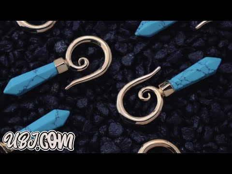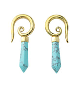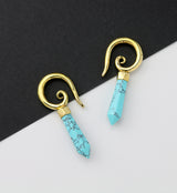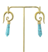 Turquoise ear weights with yellow brass. Size is 6G (4mm). These are approximately 55mm x 20mm. They weight approximately 11 grams each. Sold in pairs (2pcs). For healed piercings/lobes.