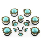 Turquoise Stone Cabochon Front Steel Plugs