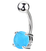 Turquoise Stone Prong Stainless Steel Belly Button Ring
