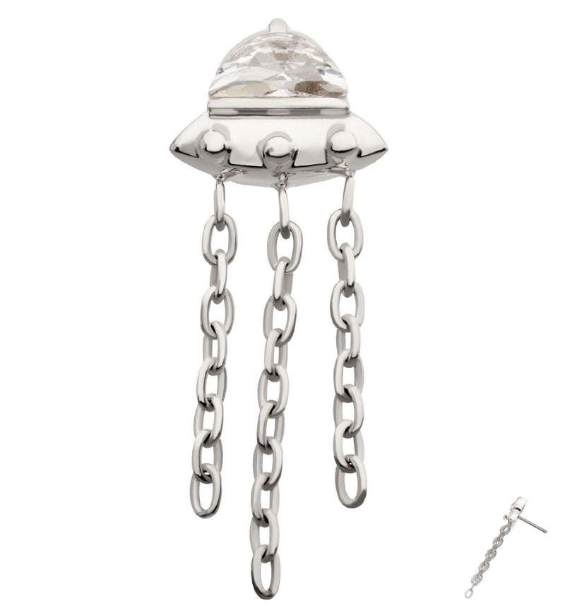 UFO Clear CZ Dangle Chains Titanium Threadless Top