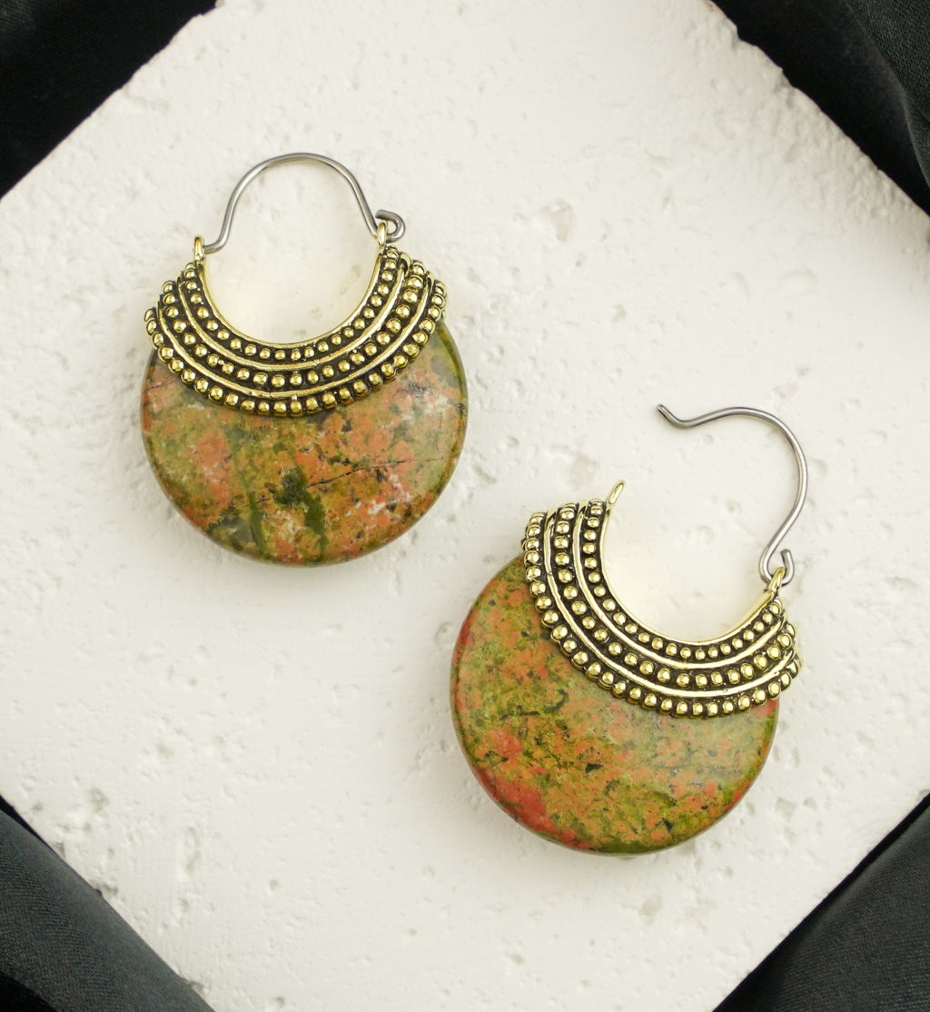 Unakite Beaded Brass Stone Earrings