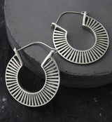 Lightweight white brass earrings/hangers with a fanned out disk design. Size is 18G. Measures at 40mm x 35mm. Weight is about 8.5 grams each. Made from white brass with a 316L stainless steel wire. Not meant for long term wear. May oxidize under extreme moisture conditions. Sold in pairs (2pc). For healed piercings/lobes.