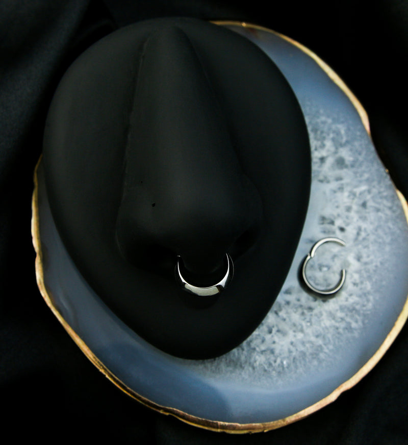 Hinged segment ring made from 316L stainless steel with a domed bottom. Size is 16G with an inner diameter size of 5/16" (8mm). The hinged design makes this piece easy to insert and remove. Sold individually (1pc).