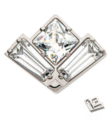 Threadless top piece filled with 2 clear baguette gems and one square cz gem. Made from ASTM F-136 titanium. Top size is 9mm x 7mm. Will fit most threadless posts. 25G pin. Sold individually (top piece only).