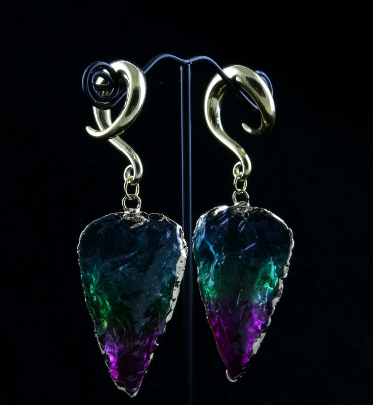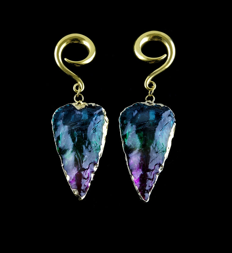 Sold in pairs (2pc) NOTICE: Each piece will be 100% unique in color, pattern and size Glass Appx 17 grams each piece 2G or bigger to wear Appx Width: 30mm +- Appx Height: 80mm +- Made from 316L stainless steel Free domestic shipping