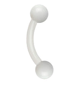White acrylic curved barbells with balls on the end. Externally threaded. Curved barbell. Size is 16G. Length: 5/16" (8mm). 8mm length will have 3mm balls. Sold individually (1pc). For healed piercings.
