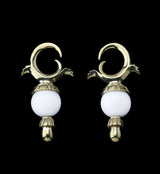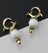 Milky white stone ear weights made from white agate stone and yellow brass. They weigh approximately 19 grams each. Must be 6G or bigger to wear. Sold in pairs (2pcs). For healed piercings/lobes.