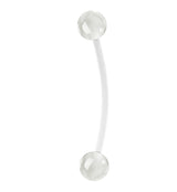 Flexible glow in the dark barbells. Hold piece up to a light source to activate. Internally threaded. Size is 14G with 6mm white acrylic balls on each end. Length is 1" (25mm). Sold individually (1pc). Also available in blue and green. For healed piercings.