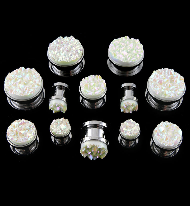 White Druzy Stone Stainless Steel Plugs