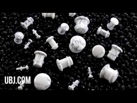 Sold in pairs (2 pieces) Sizes: 8G - 5/8" Howlite stone Single flares Bright white color Smooth & polished 2 clear "O" rings for the backs Full length: 916" (14mm) Wearable area: 10mm