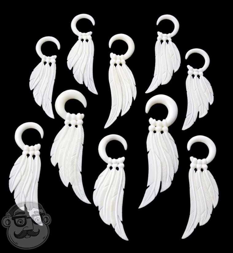 Add a touch of natural charm with these White Multi Feather Bone Hangers, sold in pairs. Handmade from sustainable water buffalo bone, each piece is smooth, polished, and ready to wear on healed lobes. Available in sizes from 12G (2mm) to 2G (6mm). Please note, do not use for ear stretching.