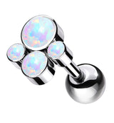 Our White Opalite Bunch Titanium Cartilage Barbell is a fun choice for body piercings. This item is sold individually and is crafted from ASTM F-136 titanium with synthetic white opal gems. It is available in two bar lengths, 1/4" (6mm) with a 4mm ball end, and 5/16" (8mm) with a 3mm ball end. Both ends are removable and it is internally threaded.