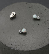 Internally threaded top piece that has a classic duo: 3mm synthetic white opalite gem and a 2mm clear cz gem. Made from ASTM F-136 titanium. Measures at about 6mm x 3.5mm. Size is 16G. M0.9 threading. Sold individually (top piece only).