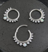 White Opalite Lucid Stainless Steel Hinged Segment Ring