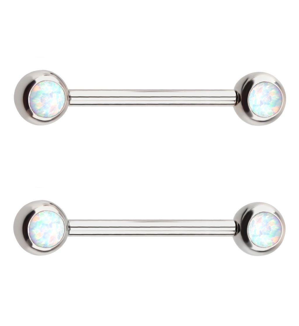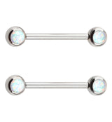 White Opalite Stainless Steel Threadless Nipple Barbells