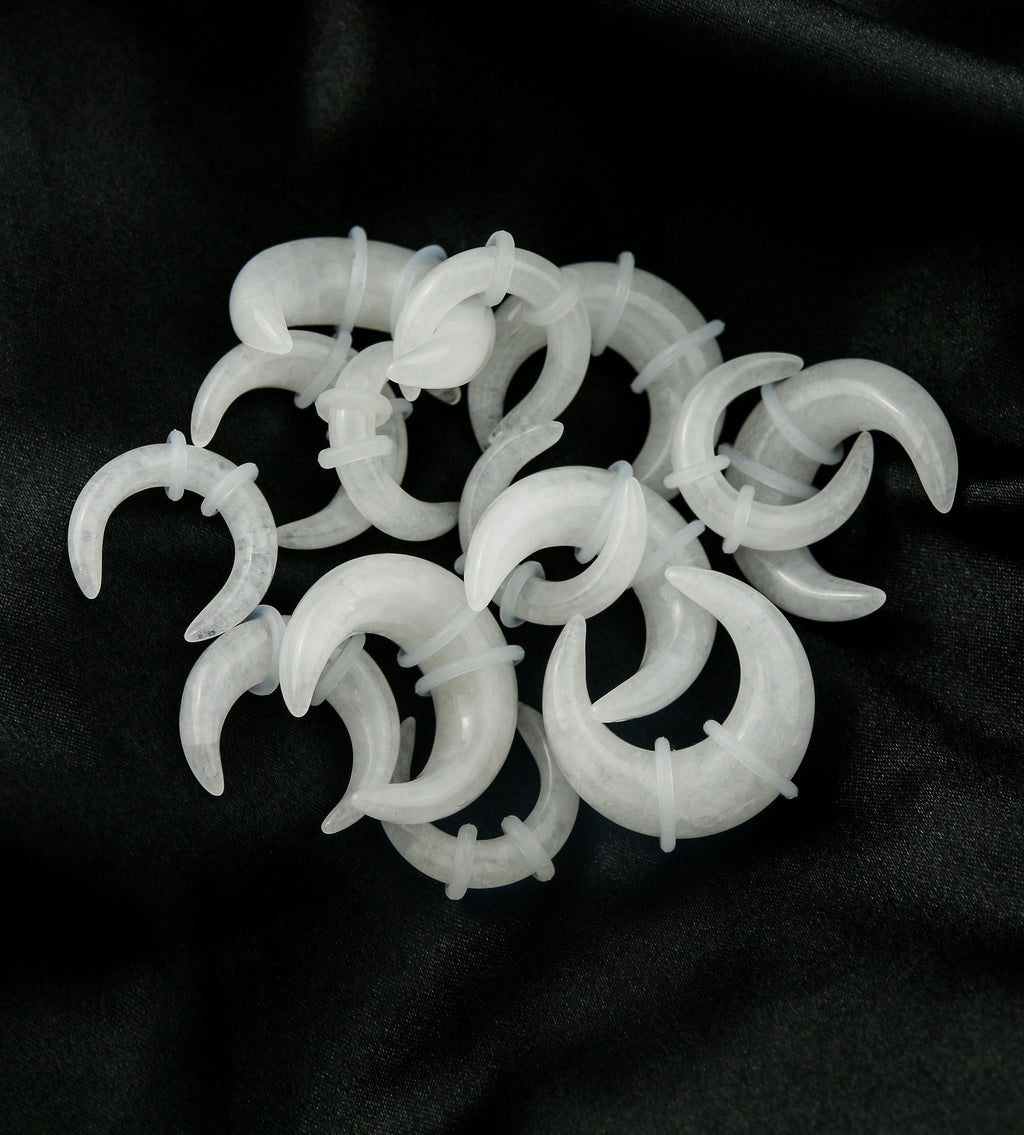 These White Quartz Stone Pinchers come in pairs and sizes ranging from 6G (4mm) to 1/2" (12mm). The smooth, polished white quartz stone adds a touch of elegance to your lobes. Plus, 4 clear "O" rings ensure they stay secure. Get pinchin'!