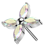 Windmill Marquise Rainbow Aurora CZ Threadless Titanium Top