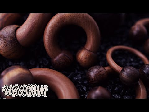 Wooden circular barbell hoop plugs made from saba wood. Each piece is handcrafted. Choose your size from 4G (5mm) to 1 inch (25mm). Please note that each piece will be unique in color and pattern due to the nature of the wood. Sold in pairs (2 pcs). For healed lobes.